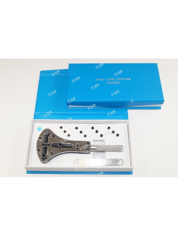 Chiave Jaxa "Original" By Bergeon presa perfetta ed una eccellente ergonomia, apertura/chiusura per fondelli da 18 a 62 mm di diametro con 3 tasselli intercambiabili e 4 diverse punte, registrazione su 2 assi, regolabili tramite ruota zigrinata e manico d'impugnatura. Swiss Made