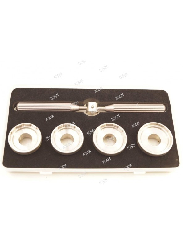 Sette tasselli in acciaio fino al fondello da diametro 36,50, impugnatura per apertura manuale e adattatore per chiave a volano tipo Bergeon