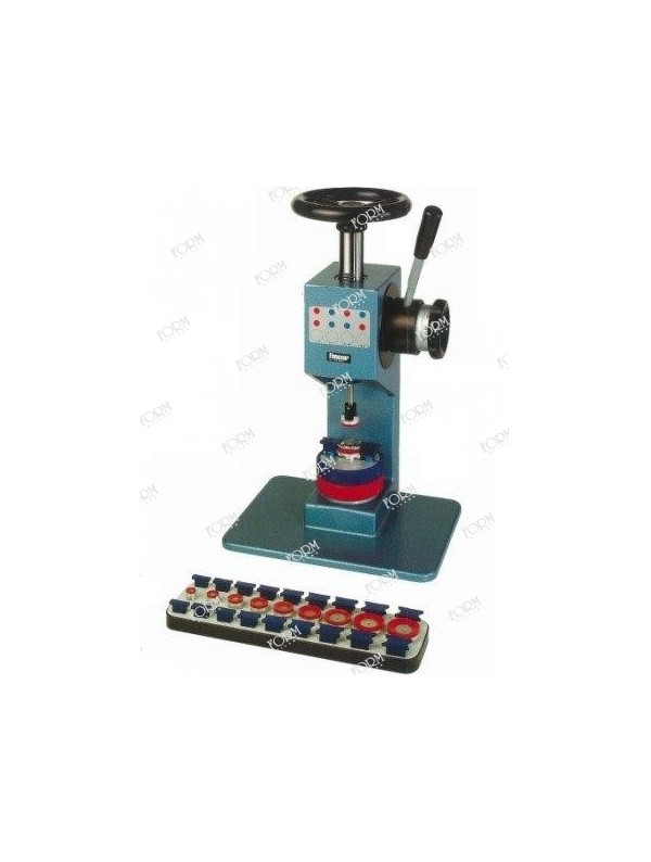 Potenza per piazzare vetri e chiudere fondelli completa di 12 tasselli in teflon, 6 piatti da 24 a 37 mm e 6 concavi da 24 a 40 mm