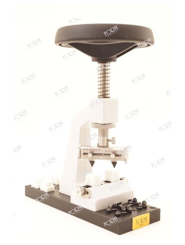 Potenza per piazzare vetri e chiudere fondelli completa di 12 tasselli in teflon, 6 piatti da 24 a 37 mm e 6 concavi da 24 a 40 mm