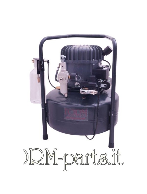 Compressore silenziato 14/16 atm serbatoio a doppia camera da 10 lt filtro anti condensa, valvola scarico condensa a doppio manometro. Valvola di sicurezza con regolatore di emissione pressione con blocco. Dimensioni: 33x43 cm peso 27 Kg