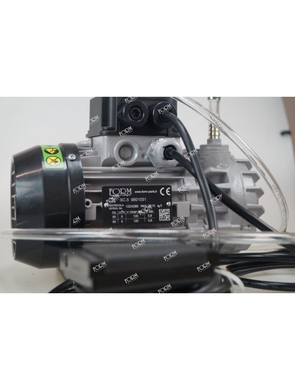 Pompa d'aspirazione a secco predisposta per una postazione di lavoro. E' dotata di filtro di recupero, archetto e spazzolino. Caratteristiche: portata 5m cubi/h n° giri: 2800/3300 giri/min. 220-240V, 50/60 Hz rumorosità a pieno regime 65 dB.