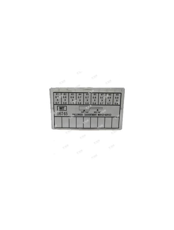 Assortimento di 60 pz prolunghe e riduttori per tiges, 5 pz per tipo, prolunghe da diam. 0,60 a diam. 1,20 mm riduttori da 70x90 - 90x70 - 90x80 - 90x120 - 120x90 -