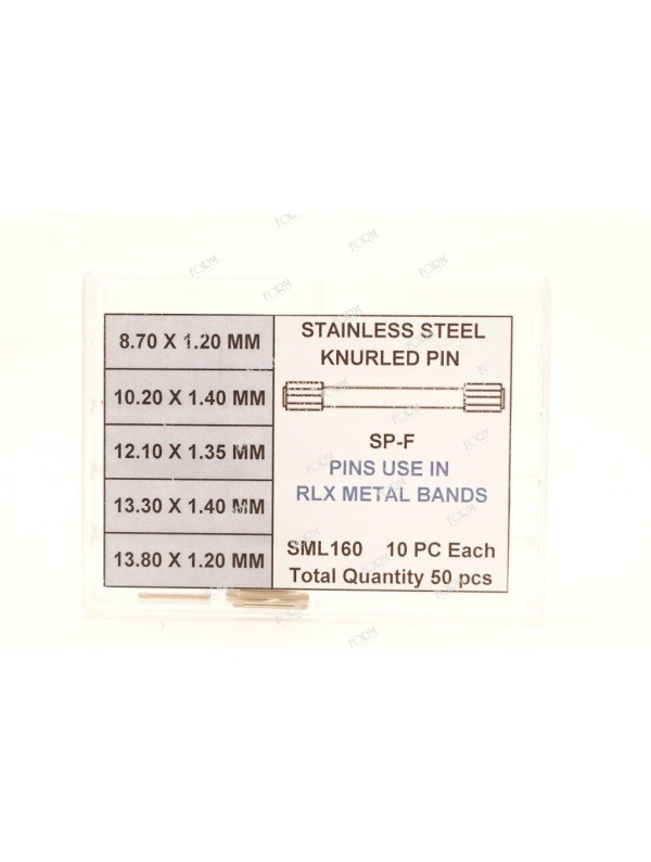 Assortimento di 50 perni in acciaio inox compatibili con le maglie dei bracciali Rolex, misure presenti;8,70x 1,20-10,20x1,40-12,10x1,35-13,30x1,40-13,80x1,20-