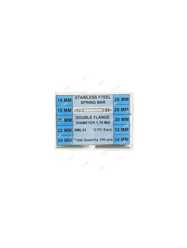 Assortimento di barrette a molla da 100 pezzi in acciaio. Da 16 m/m a 34 m/m diametro 1.78; 10 pezzi per tipo