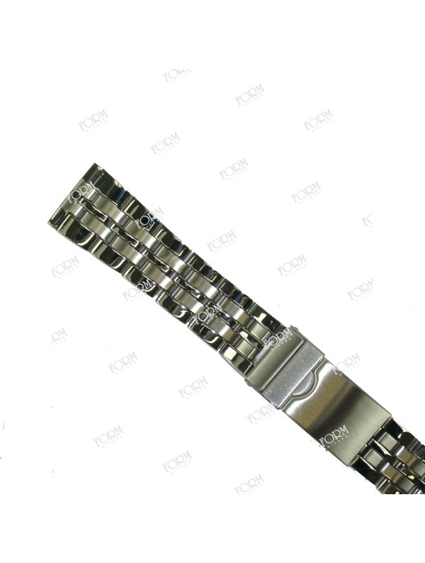 Fabbricazione italiana: ansa curva 20 m/m modello oyster. Maglie in acciaio pieno lucido/satinato, chiusura a scatola con sicurezza, accorciabilità con viti sulle prime 6 maglie
