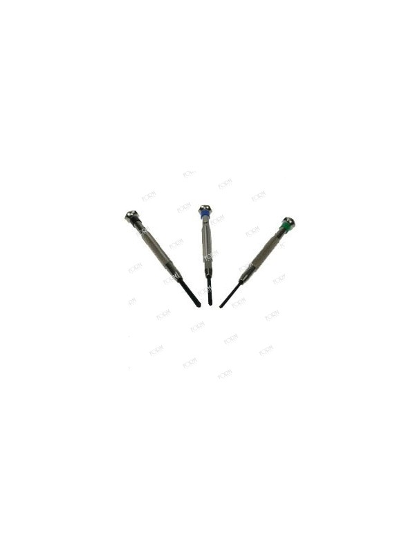 Assortimento in astuccio di legno con 3 pezzi di cacciaviti con 4 lame di ricambio per modello. Diametri presenti: 0.50/0.60/0.80