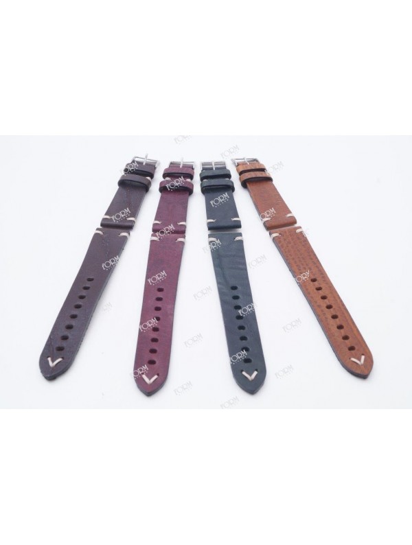 Cinturino in vera pelle imbottito tranciato. Disponibile in 18 colori con fibbia in acciaio inox e cuciture su tono. 100% made in Italy, disponibile anche xl da 12 a 24 m/m. Il prezzo è riferito per le misure da 12 a 20 m/m