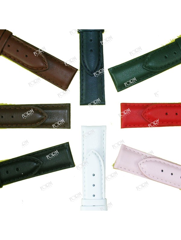 Cinturino in vera pelle imbottito tranciato. Disponibile in 18 colori con fibbia in acciaio inox e cuciture su tono. 100% made in Italy, disponibile anche xl da 12 a 24 m/m. Il prezzo è riferito per le misure da 12 a 20 m/m