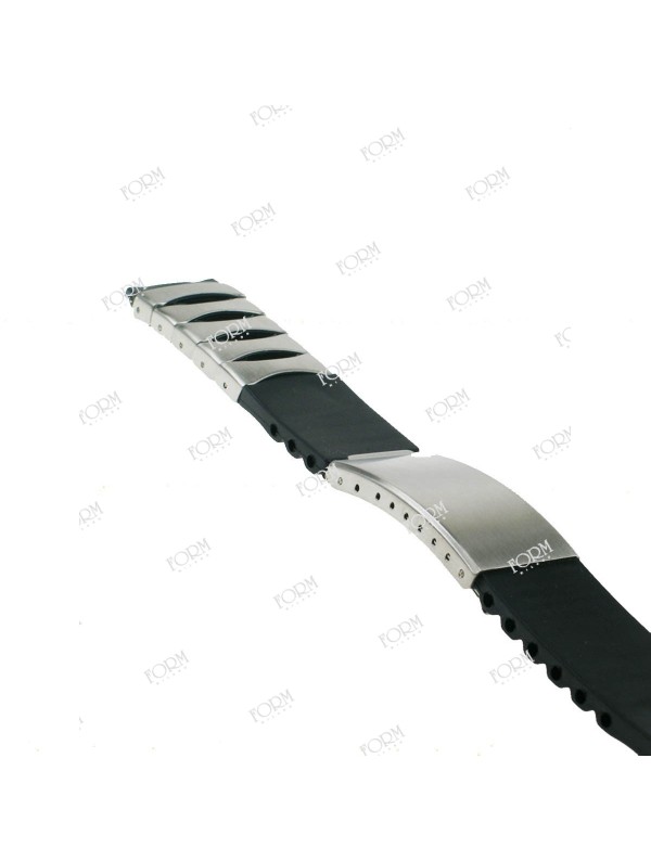 In silicone extra fibbia in acciaio. Disponibile nelle misure di 20-22-24 m/m solo in colore nero