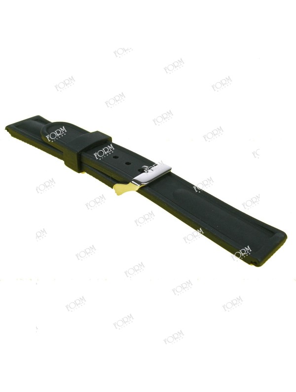 In silicone extra fibbia in acciaio. Disponibile nelle misure di 20-22-24 m/m solo in colore nero