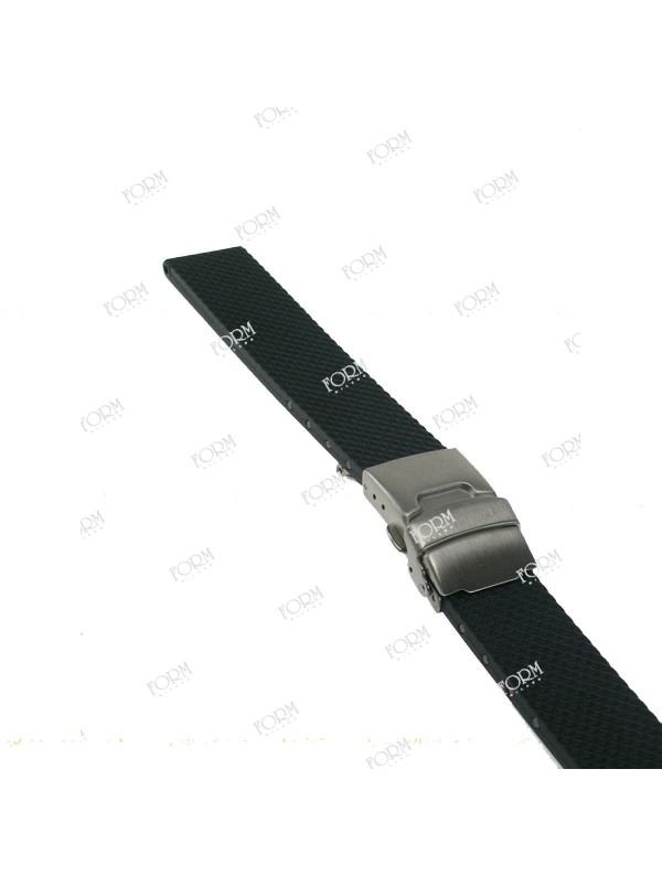 In silicone extra fibbia in acciaio. Disponibile nelle misure di 20-22-24 m/m solo in colore nero