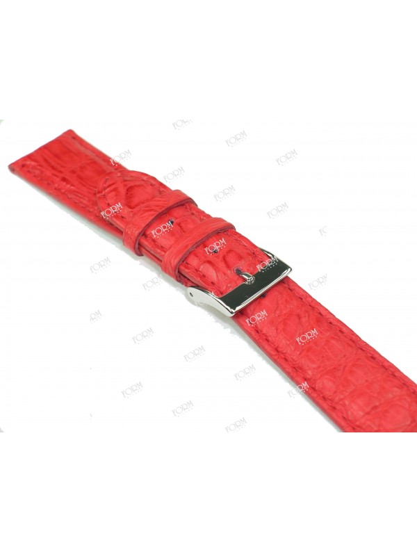 Stampa alligatore in vera pelle e semi ribordato e cucito con fibbia in acciaio e attacco aperto per cassa ad ansa fissa; misure disponibili da 10 a 22 m/m. Manifattura 100% made in Itlay