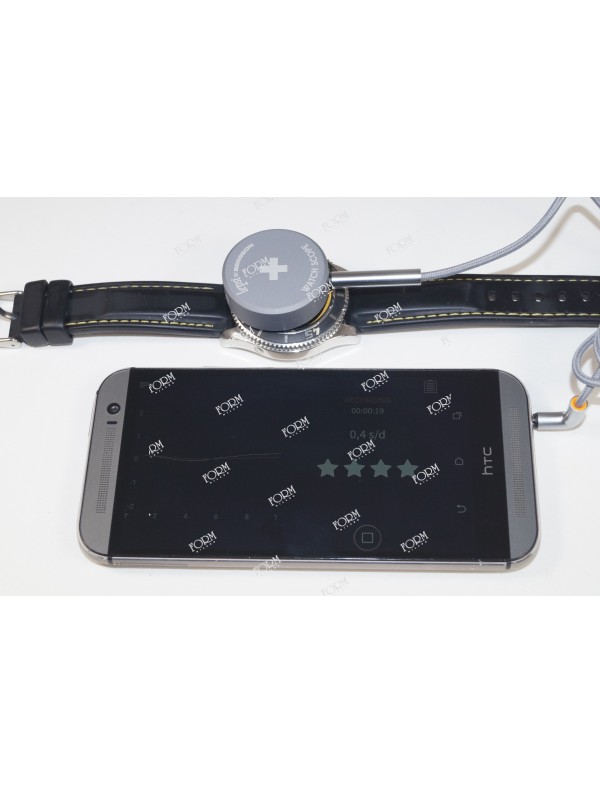 Uno strumento regolabile che incorpora l'elettronica di misura; il dispositivo infatti misura in maniera davvero precisa l'errore, la frequenza, l'errore di battuta e l'amplitudine degli orologi meccanici, il tutto sul display del vostro tablet o smartphone.
