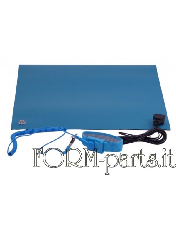 Tappetino antistatico completo di cavo di massa e fascia da polso elastica e regolabile, misure 30 x 30 cm spessore 2,03 mm