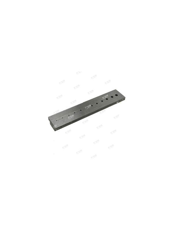Tassello forato in acciaio 36 fori da 0.5 a 4 m/m dimensioni 77x25 m/m