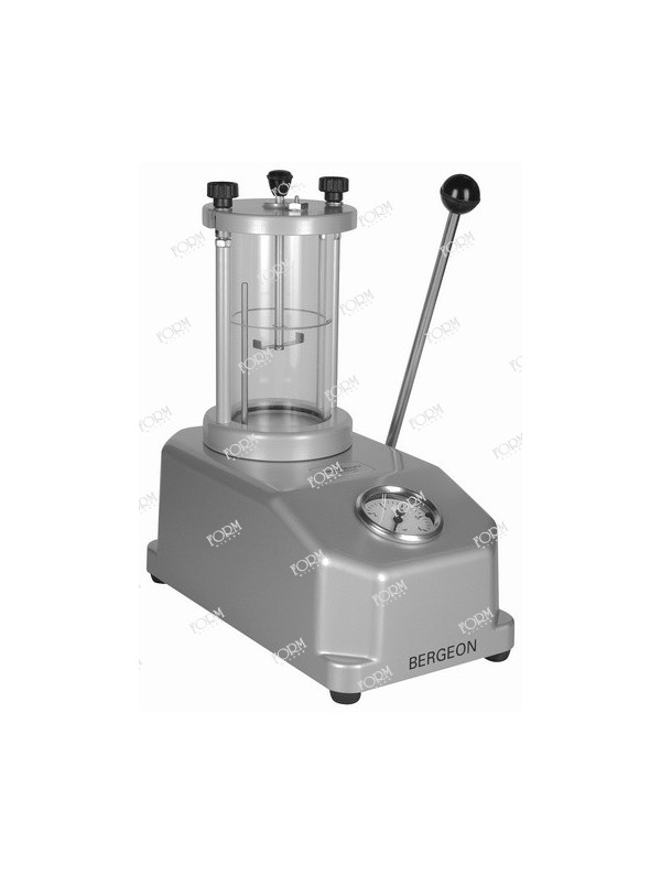 Apparecchio autonomo per il controllo dell'impermeabilità ad alte pressioni. Camera stagna da 0.21 lt. Diametro 65 m/m ht 50 m/m. Atm da 0 a 40 bar; dimensioni totali 250 x 270 x 250 m/m peso 7 Kg (versione come da foto)
