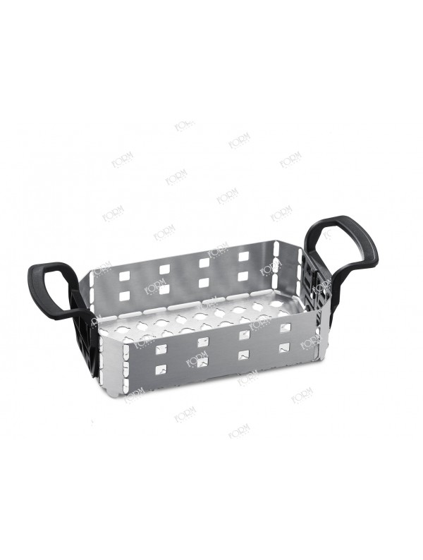 Cestello inox 112 x 103 x 55 mm con manici ricoperti in materiale sintetico per vasca ultrasuoni Elma S15 H