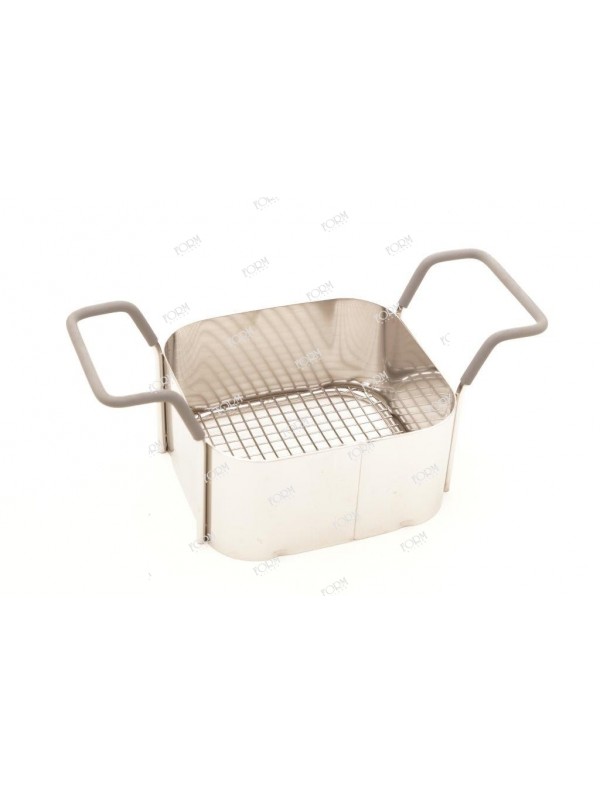 Cestello inox 112 x 103 x 55 mm con manici ricoperti in materiale sintetico per vasca ultrasuoni Elma S15 H