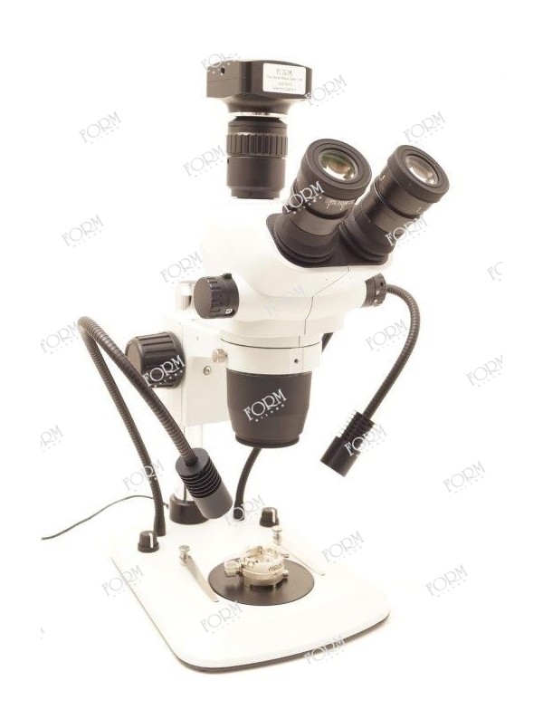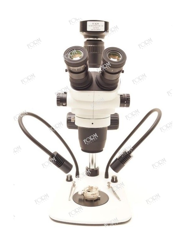 Microscopio con ottica binoculari mobili, messa a fuoco a cremagliera tramite manopola lato destro e sinistro, duplicatori di ingrandimenti sempre regolabili con manopola destra e sinistra. Illuminazione led sotto vetro variabile, illuminazione superiore tramite bracci flessibili direzionabili intensità illuminante a LED variabile fino a...