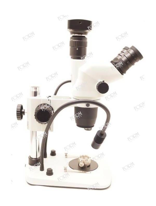 Stereo microscopio DVA sport, identico alla versione DV4 ma sostenuto da staffa mobile. Dotato di un sistema di illuminazione a fibra ottica che permette un'illuminazione omogenea