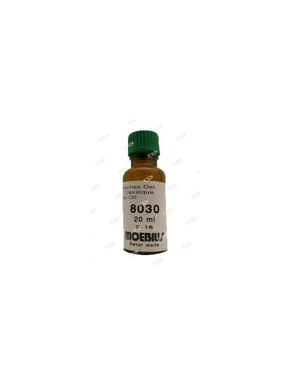 Flacone di olio Moebius 8030 20 ml indicato per sveglie, grossa orologeria, meccanica di precisione e carillon con limite d'impiego da -18° a +80°