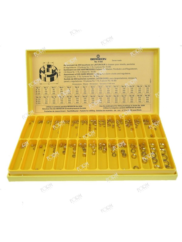 Assortimento di 225 grani in ottone duro per sveglie e pendoli