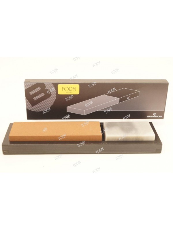Pietra India più pietra Arkansas in confezione di legno, pietra India; 150 x 50 x 25 mm - pietra Arkansas 80 x 50 x 25 mm peso tot compresa confezione 1,00 kg swiss made