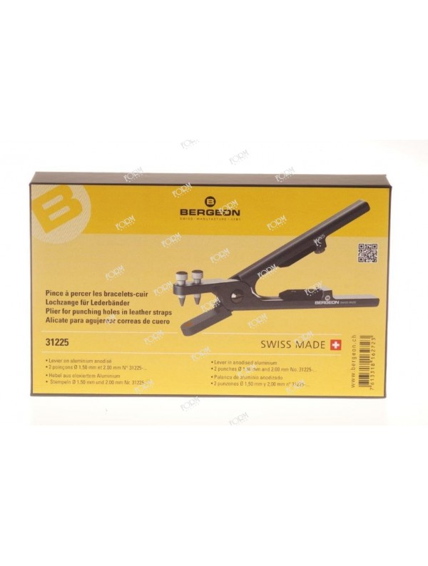 Pinza per fori aggiuntivi nei cinturini in pelle e caucciù; grazie alla sua stella con sei fustelle, ti permette di eseguire fori rotondi da 1,20 - 1,60 - 2,00 - e 2,50 mm più due fori rettangolari 2,6 x 1,6 e 4,5 x 2,00 mm. Tutte le fustelle sono intercambiabili Techniwatch Swiss made
