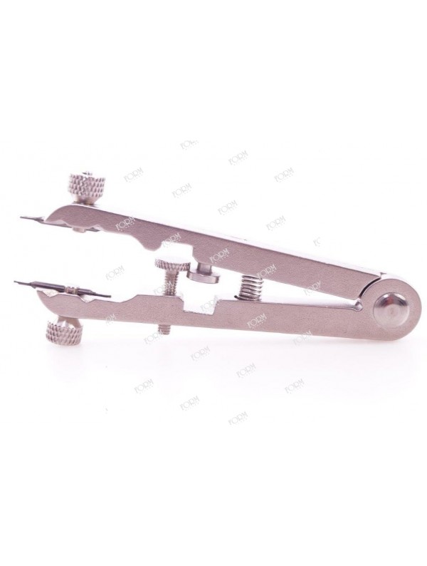Pinza a lama, con punte a forchetta intercambiabili, per mettere e rimuovere le anse dei bracciali la dove l'operazione deve essere fatta in modo simultaneo.