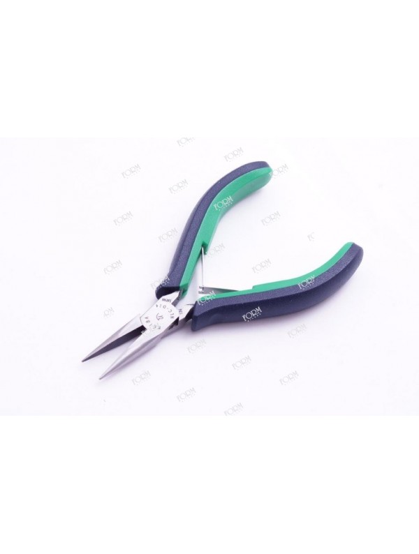 Pinza becchi a punta lisci, manico ricoperto anti scivolo e molla di ritorno; lunghezza 120 m/m e spessore 5.00 m/m