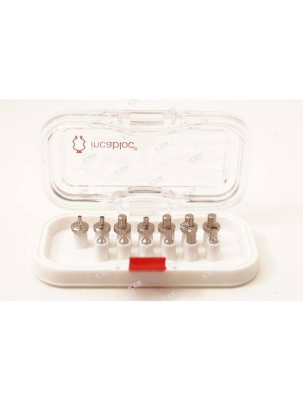 Serie completa di 48 tasselli per piazzare le pietre, di cui 24 tasselli a pompa da diametro a 0.70 a 300, più 24 tasselli. disponibili con attacco sulla broche diam. 3 e 4 mm