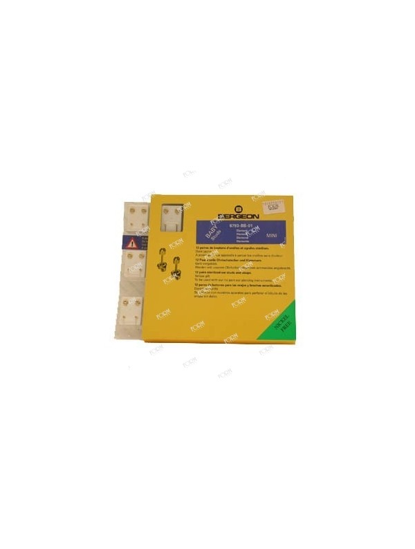 Confezione di 12 paia modello baby con gambo corto a forma di pallina. Diametro di 2.48 m/m. Materiale: acciaio laminato senza nickel come da normativa CE