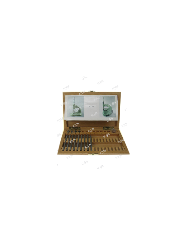 Utensile piazza pietre seitz Bergeon completo di 12 punzoni piatti, 12 punzoni a pompa, 11 punzoni concavi, 15 alesatori più tasselli di tutte le misure