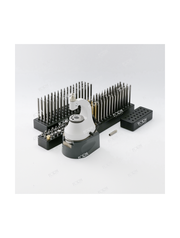 Utensile piazza pietre seitz Bergeon completo di 12 punzoni piatti, 12 punzoni a pompa, 11 punzoni concavi, 15 alesatori più tasselli di tutte le misure