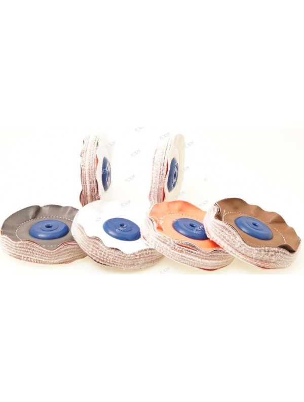 Spazzola a dischi di cotone morbido cucito, diametro 100 m/m ht 20 m/m consigliata per la brillantatura dei metalli