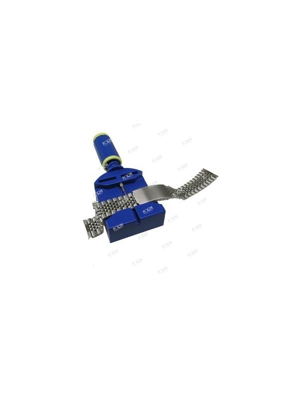 Utensile economico e funzionale. Ideale per togliere le cupiglie dei bracciali senza l'ausilio del martello. Con una leggera spinta sul manico crea una micro percussione sulla cupiglia, fornito con 2 molle di forze diverse e 2 punte